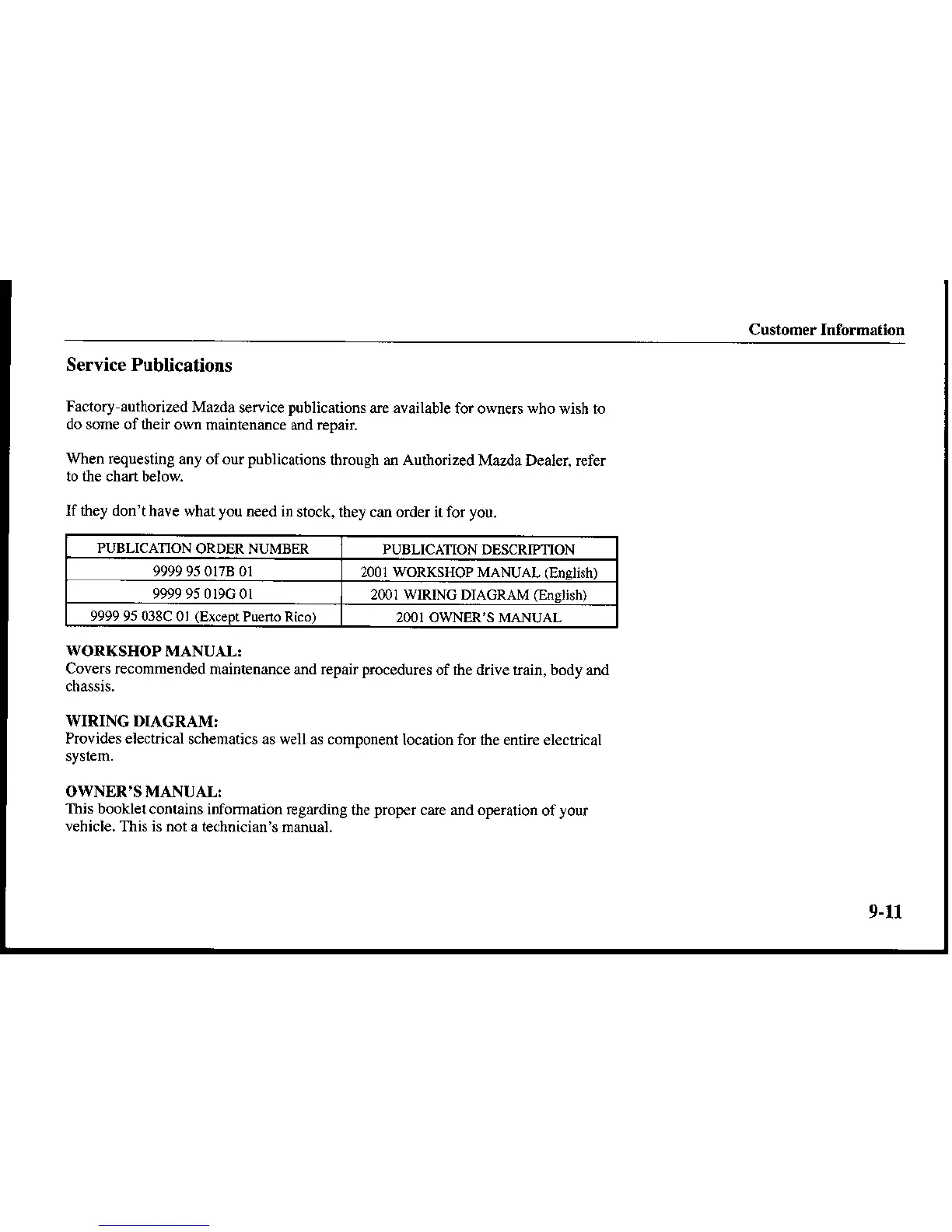2OOI OWNER'S MANUAL