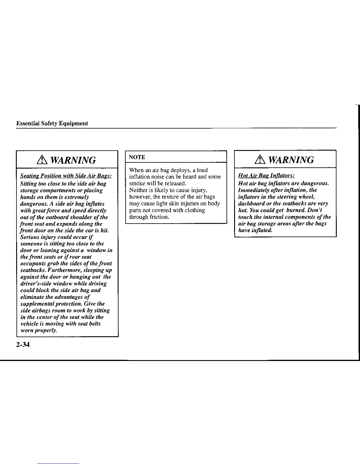 Seating Positionwith Side Air Bags: