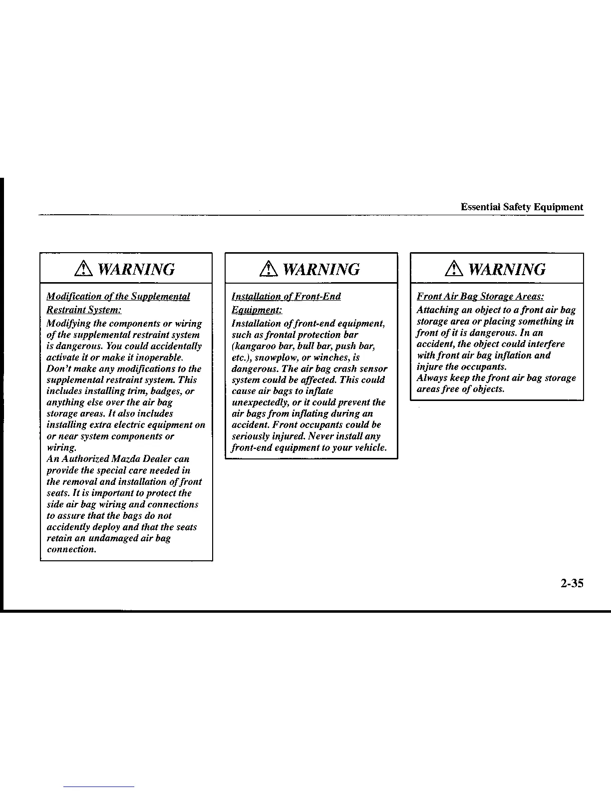 Front Air Bag Storage Arcas: