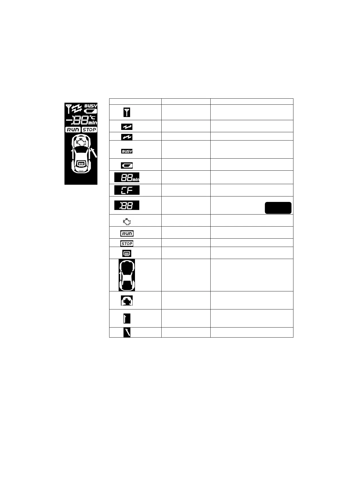 Time display Displays the engine warm up