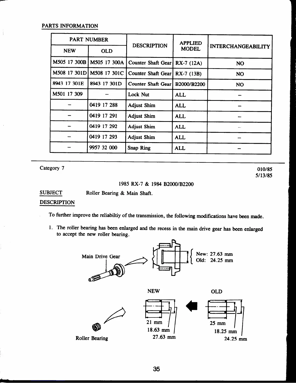 Mazda RX-7 1985 - Roller Bearing & Main Shaft
