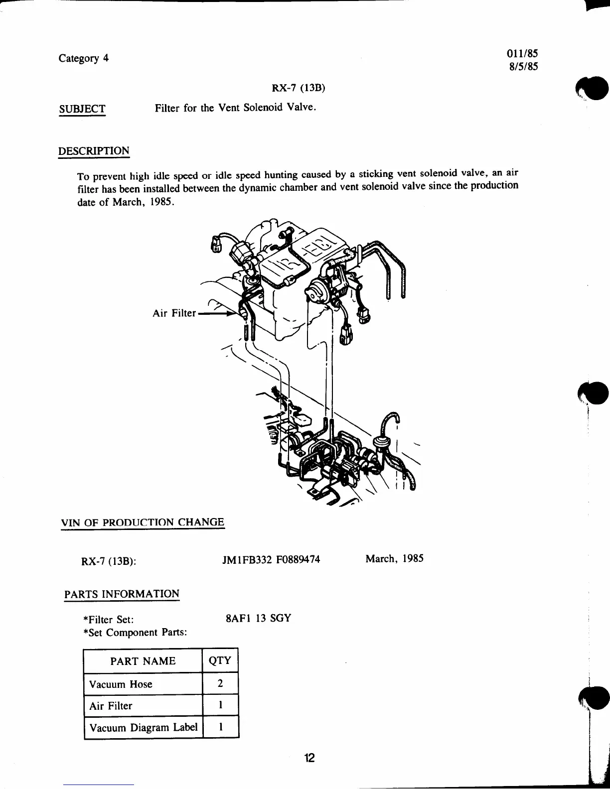 Mazda RX-7 1985 - Filter for the Vent Solenoid Valve