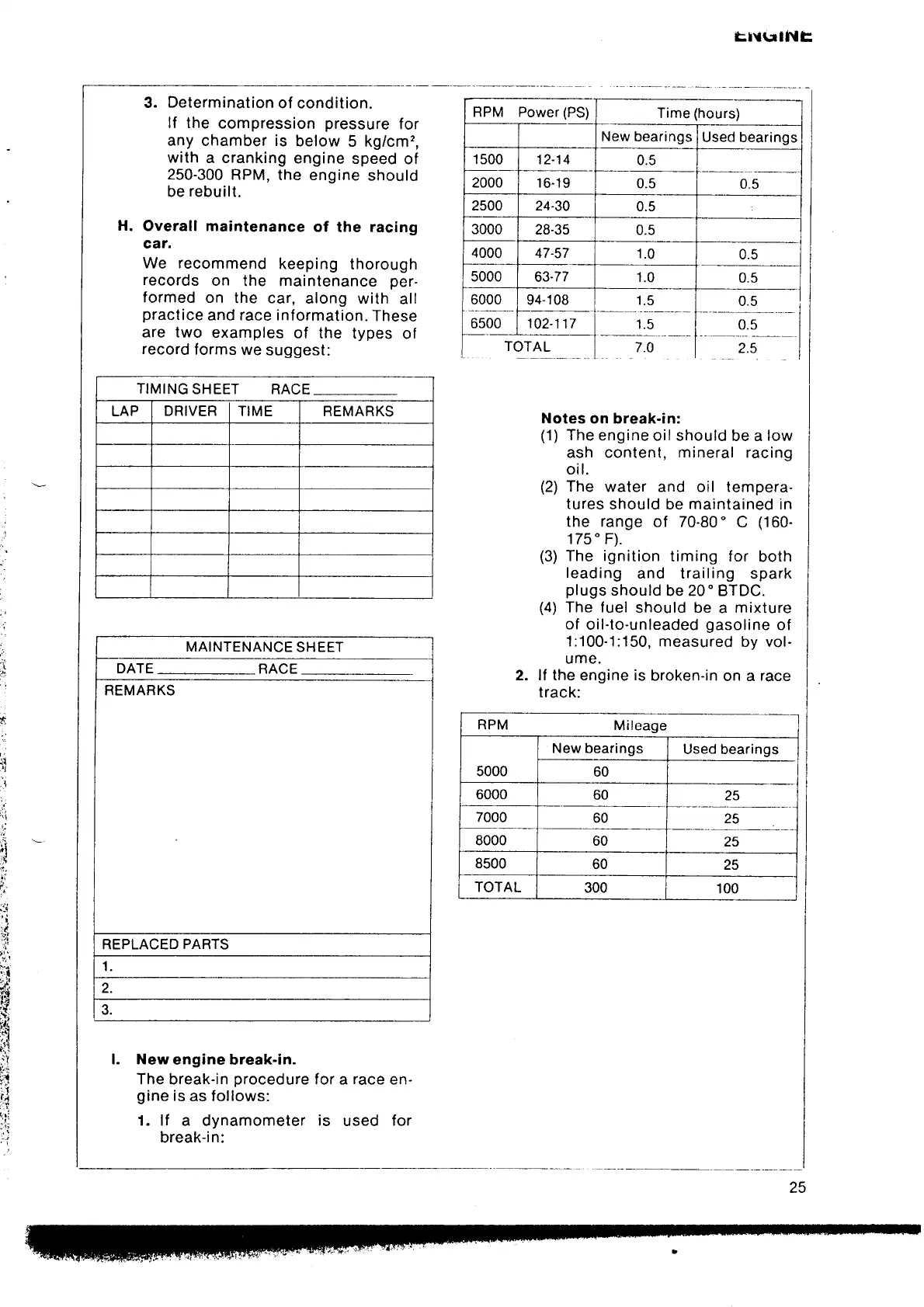 Mazda RX-7 - Notes on Break-In; Overall Maintenance of the Racing Car