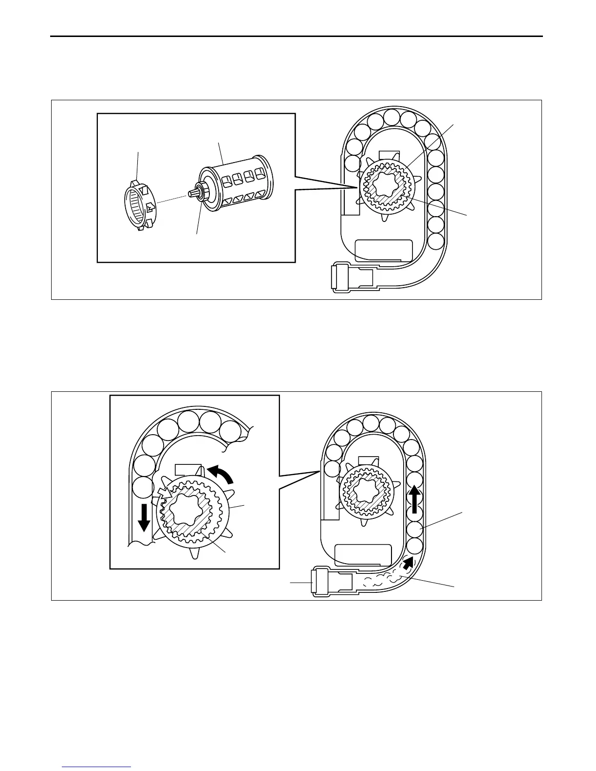 • There is a ring gear around the pinion. Because the pinion does not engage with the ring gear during normal