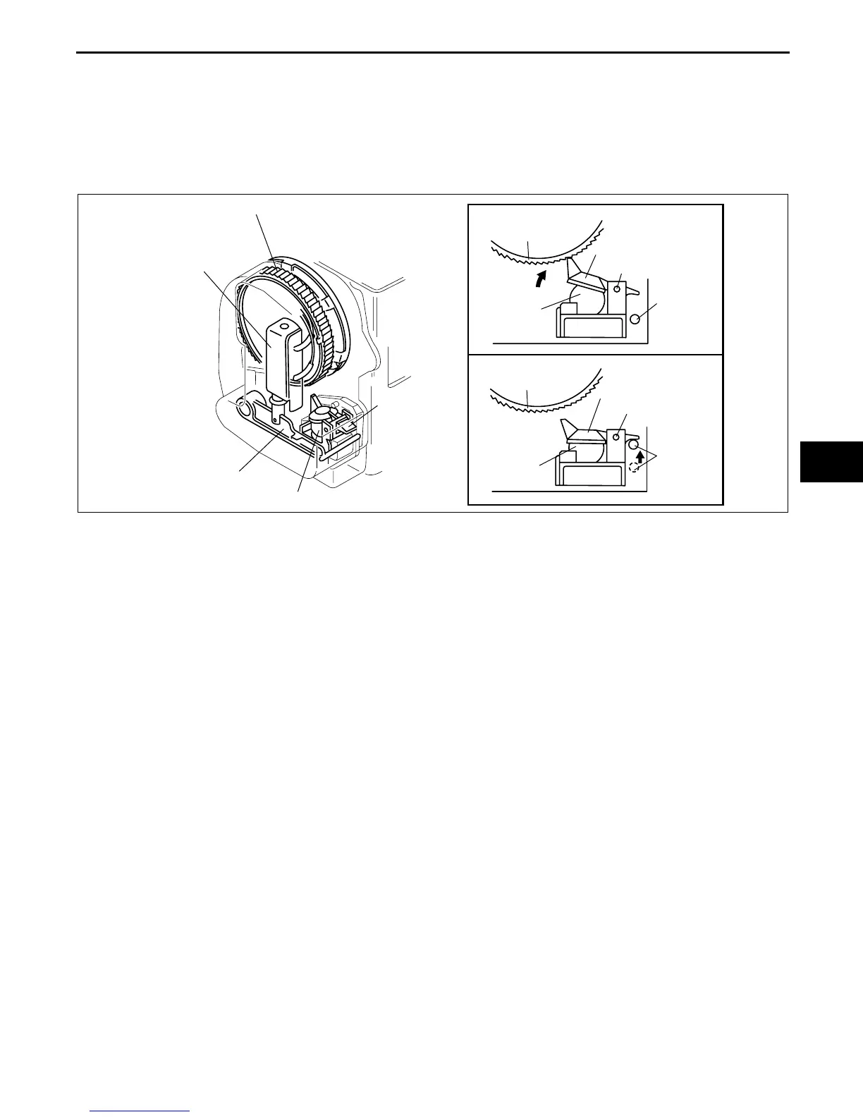 with a lock gear and stops its rotation (ELR condition). Due to this, the rotation direction of belt pull out is