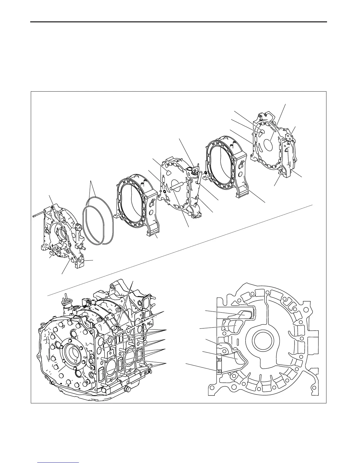 • On the front housing are the bosses for installing the oil pump and the oil strainer.