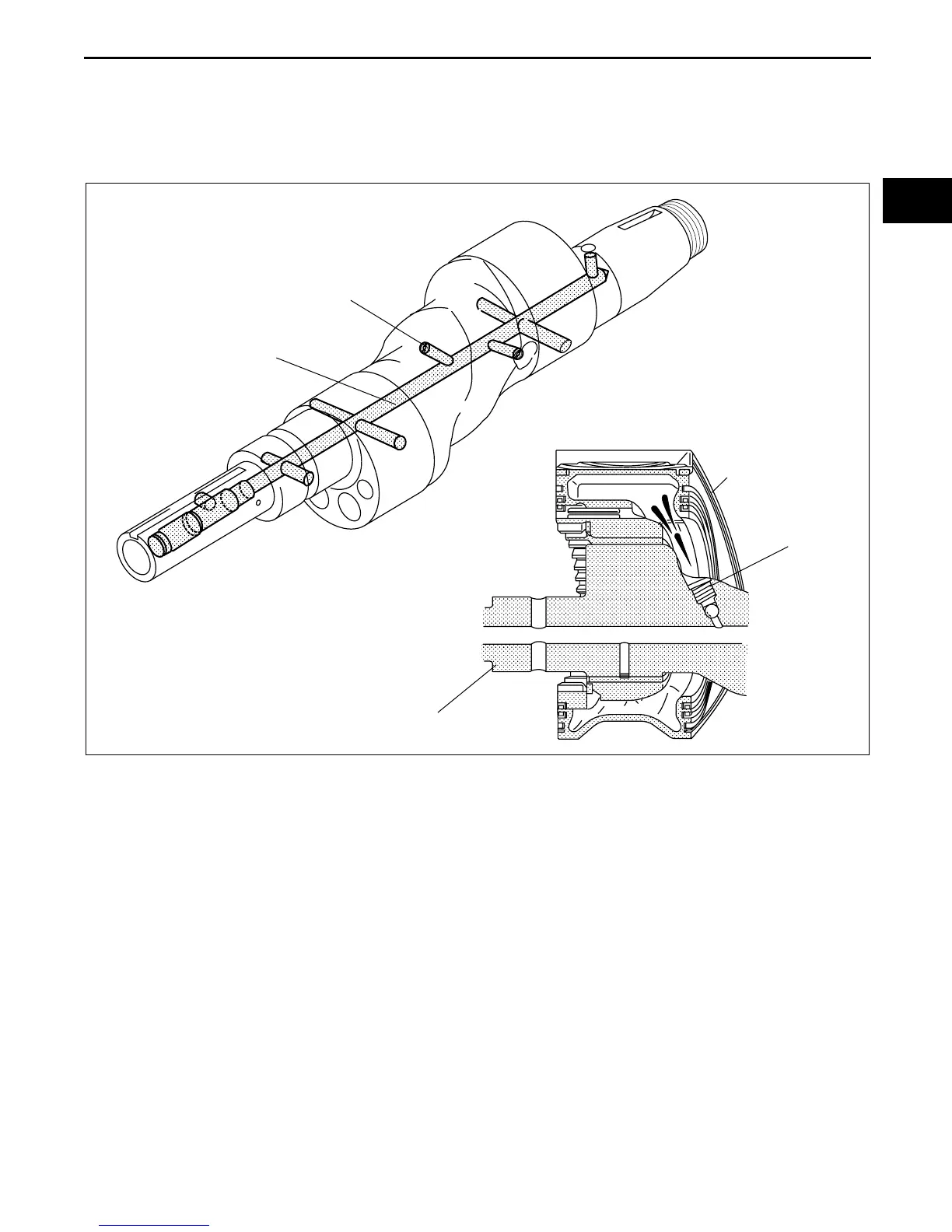 • The oil passage supplying lubrication for each journal and the rotor cooling oil jet plugs, runs from the front end