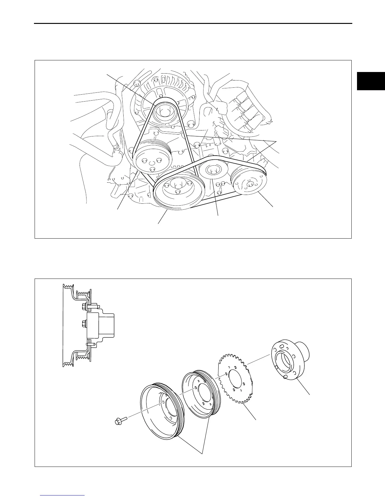 • The V-ribbed drive belts are composed of two belts, one that drives the generator and the water pump, and