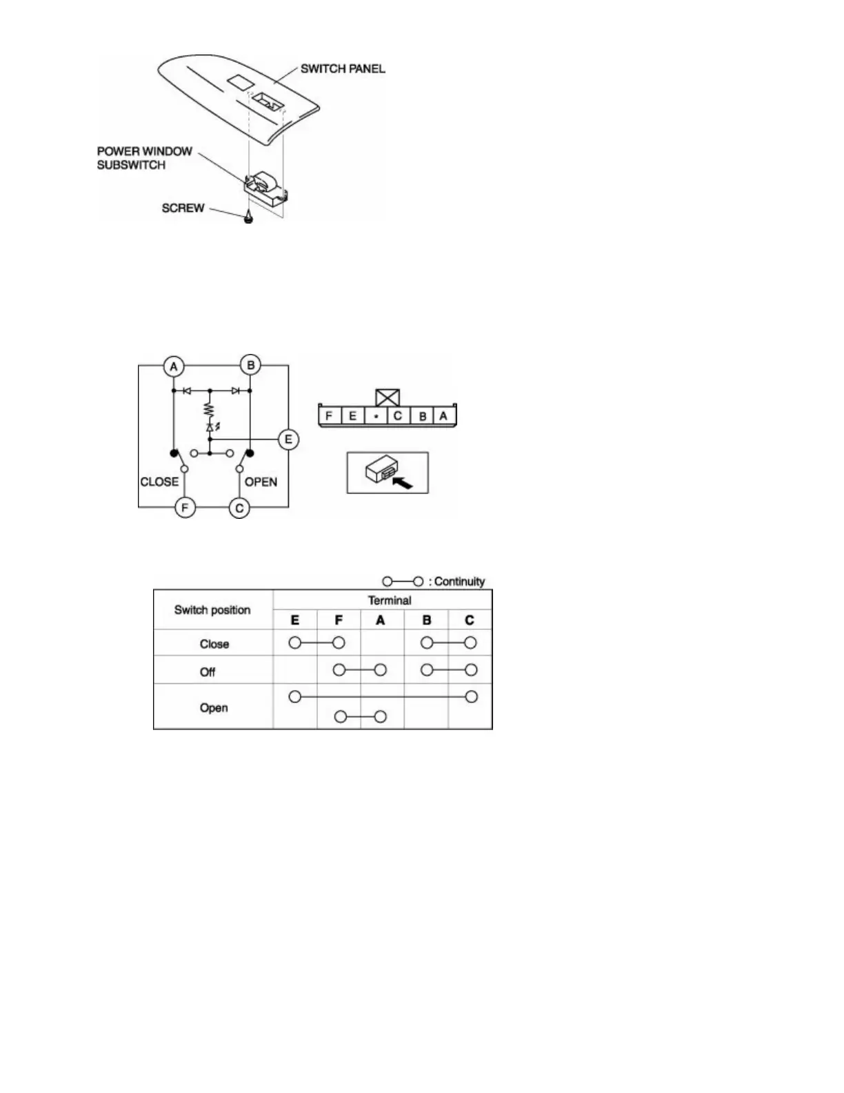 2. Connect battery positive voltage to terminal E and ground to the terminal A. Verify that continuity