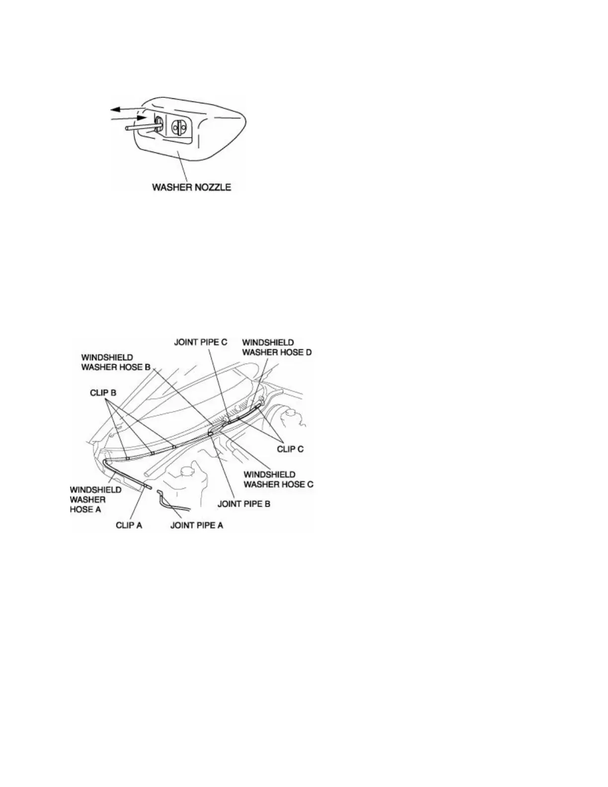 • If the nozzle becomes clogged again after cleaning, remove the hose from washer nozzle. Make