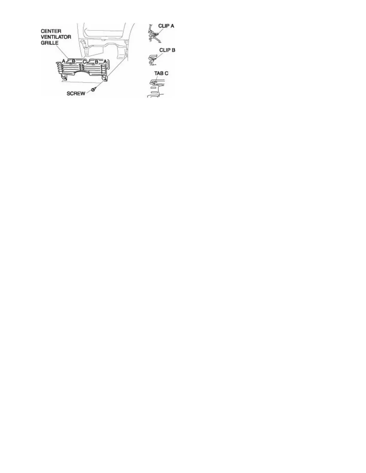 4. Pull the ventilator grille outward and detach clips A and B.