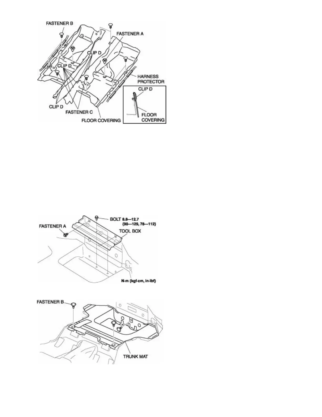 4. Remove the fasteners B, then remove the trunk mat.