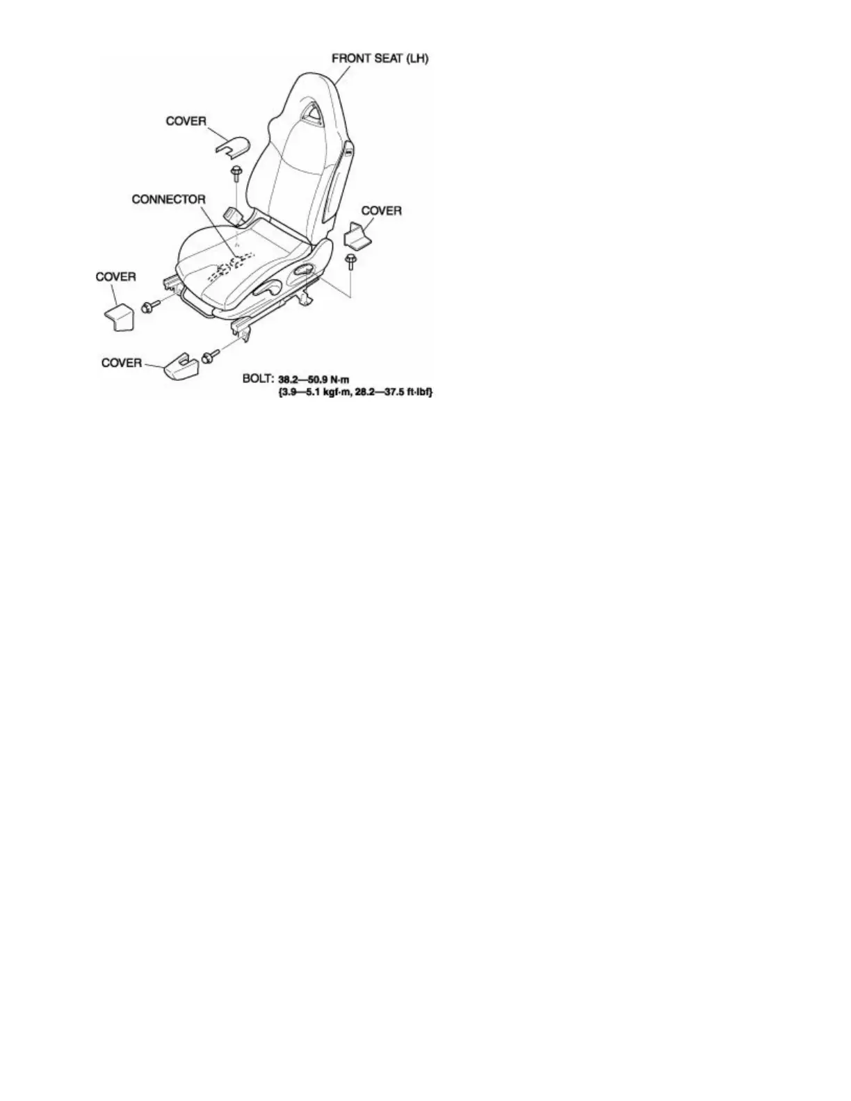 5. Remove the bolts, then remove the front seat.