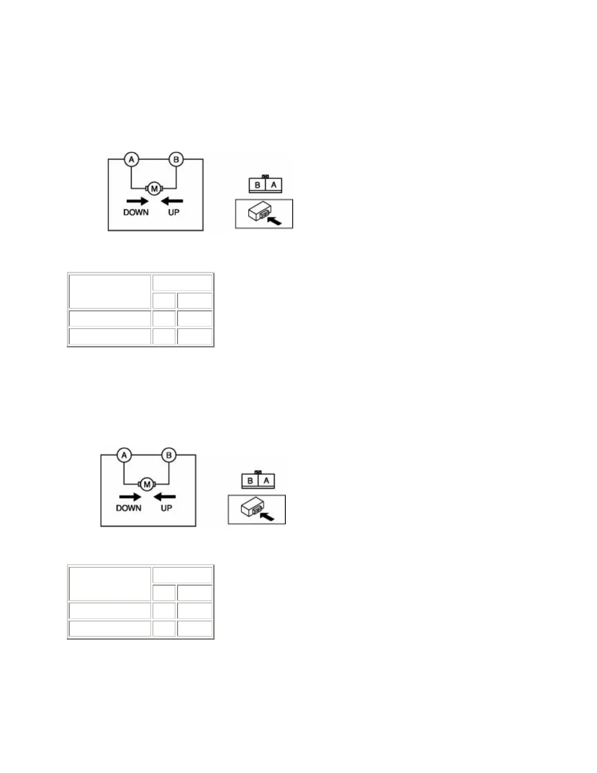 • If the rear tilt motor does not operate as indicated in the table, replace the rear tilt motor.