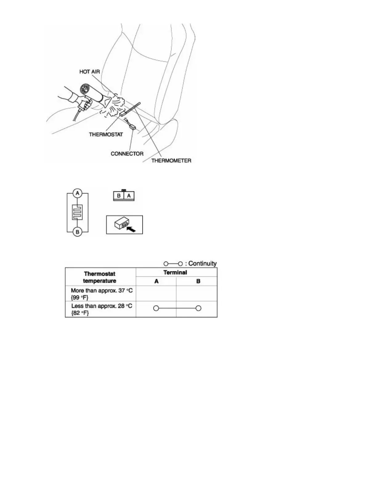 4. Verify that the continuity between the seat warmer terminals is as indicated in the table.