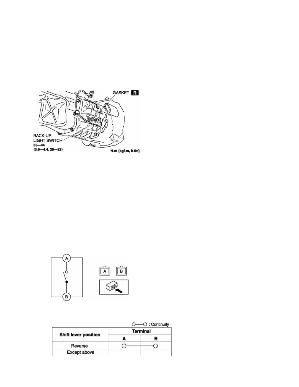 2. Verify that the continuity between the back-up light switch terminals is as indicated in the table.