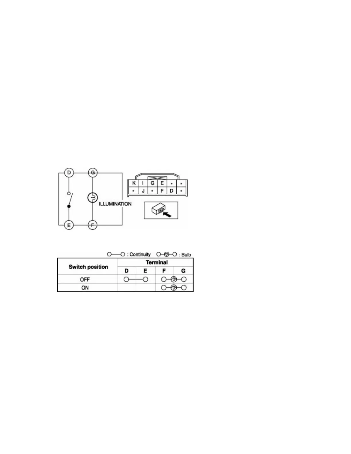 4. Verify that the continuity between the hazard switch terminals is as indicated in the table.