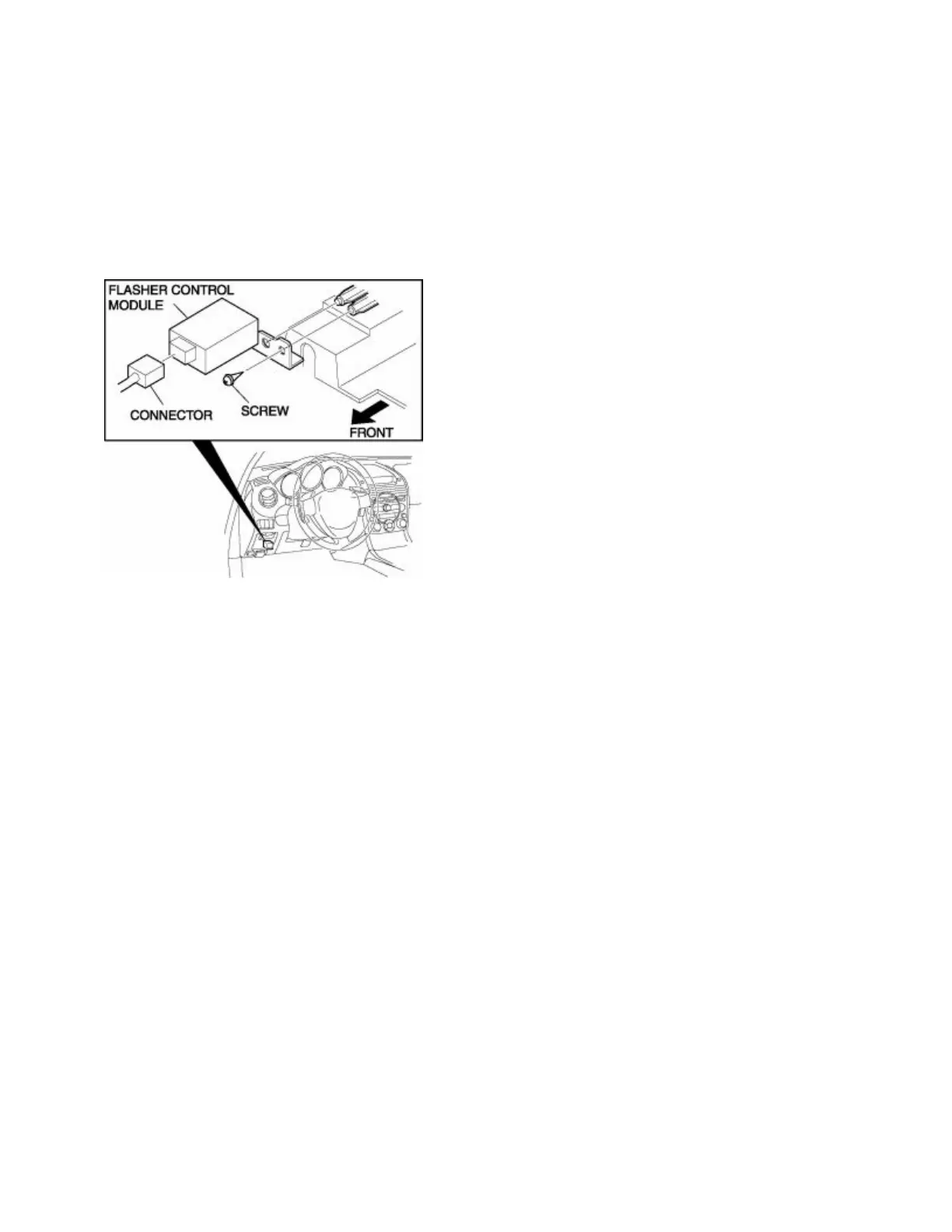 1. Remove the flasher control module with the connector still connected.