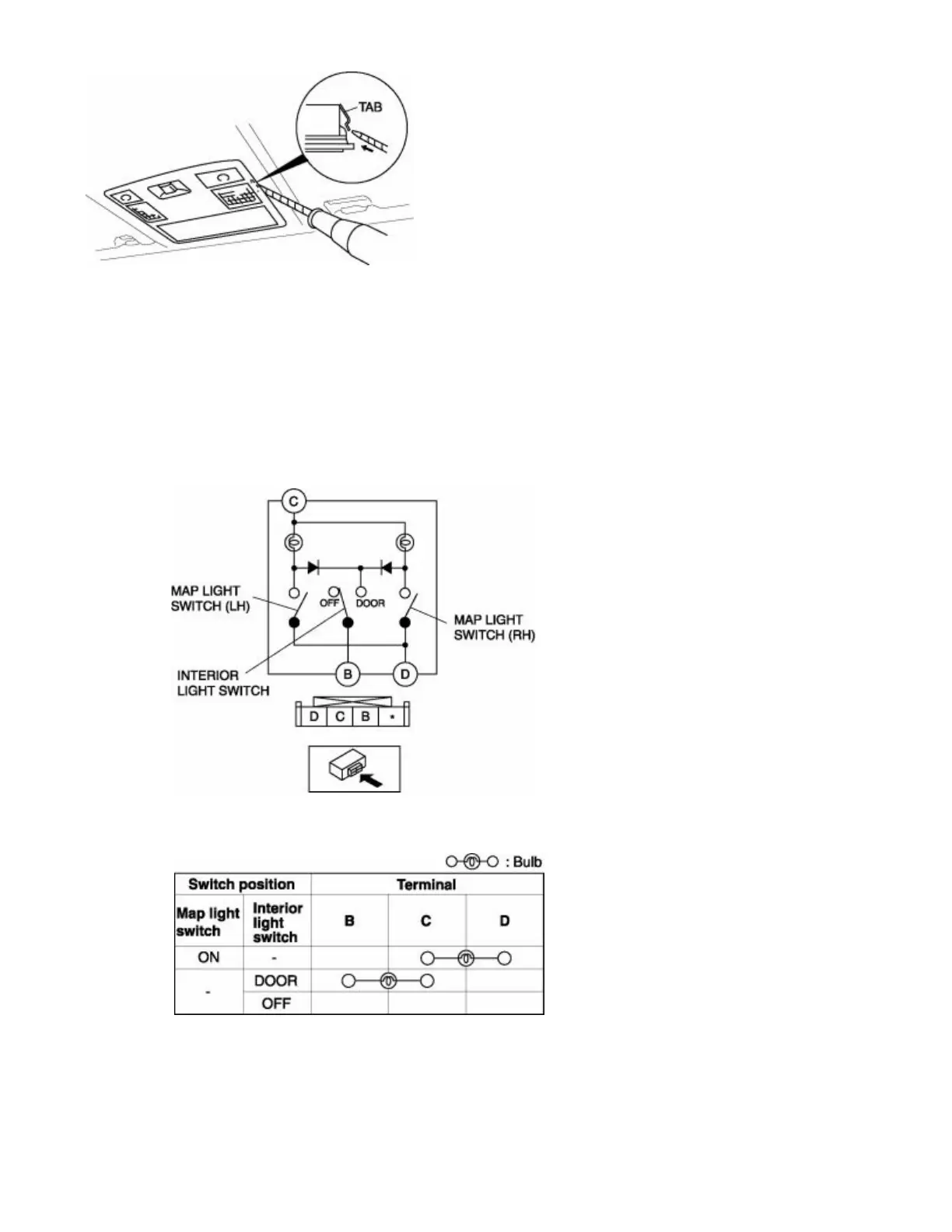 1. Remove the map light.(See MAP LIGHT REMOVAL/INSTALLATION .)