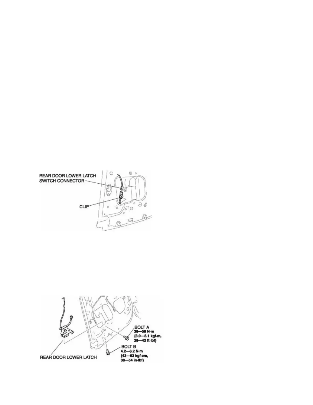 REAR DOOR LOWER LATCH REMOVAL/INSTALLATION