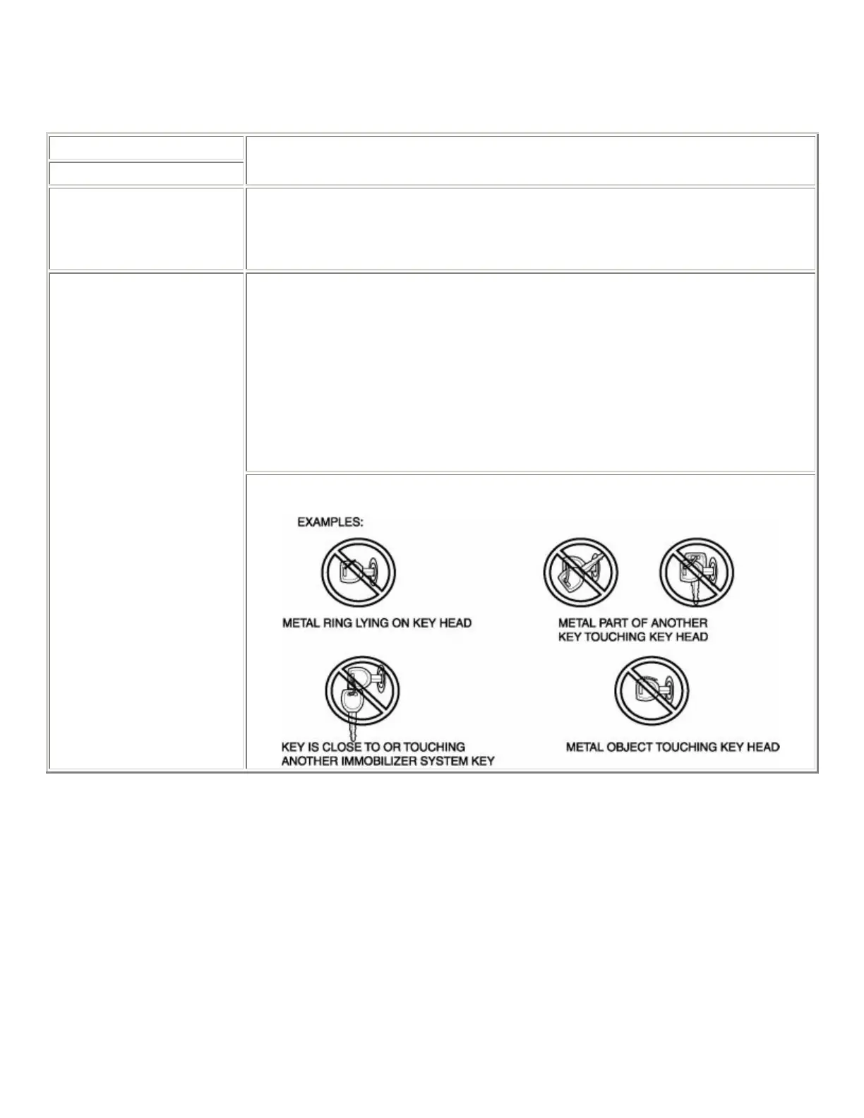 • Any of the following items are touching or near the key head.