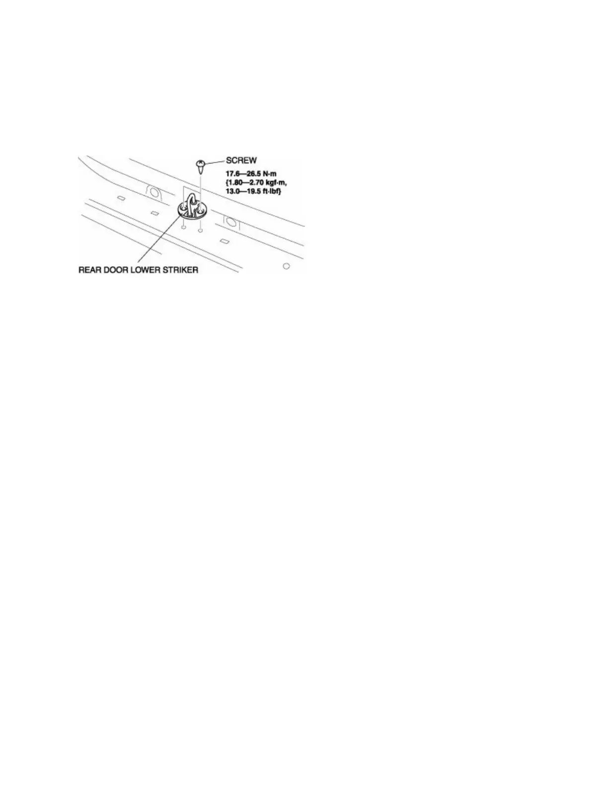 2. Remove the screws, then remove the rear door lock striker (lower).