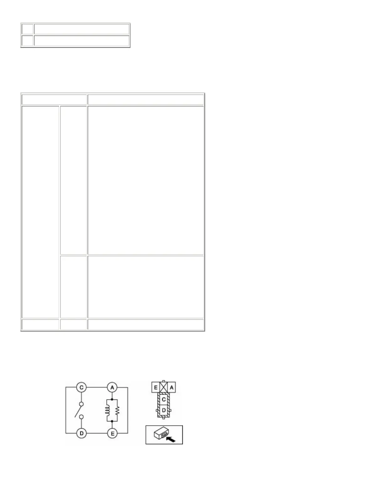 • If not as indicated in the table, replace the relay.