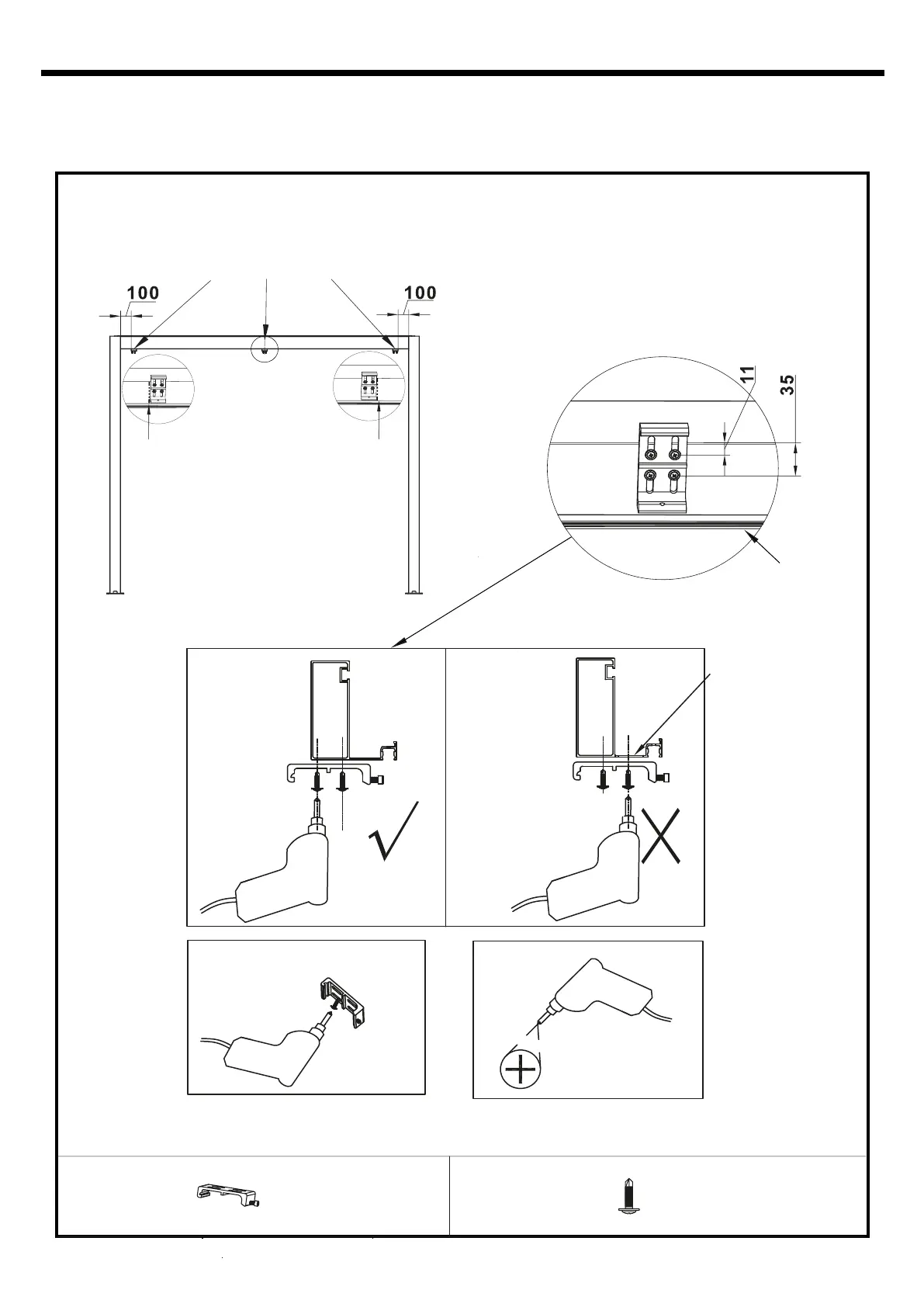 2. Drill 4x K3 screws, according to the size