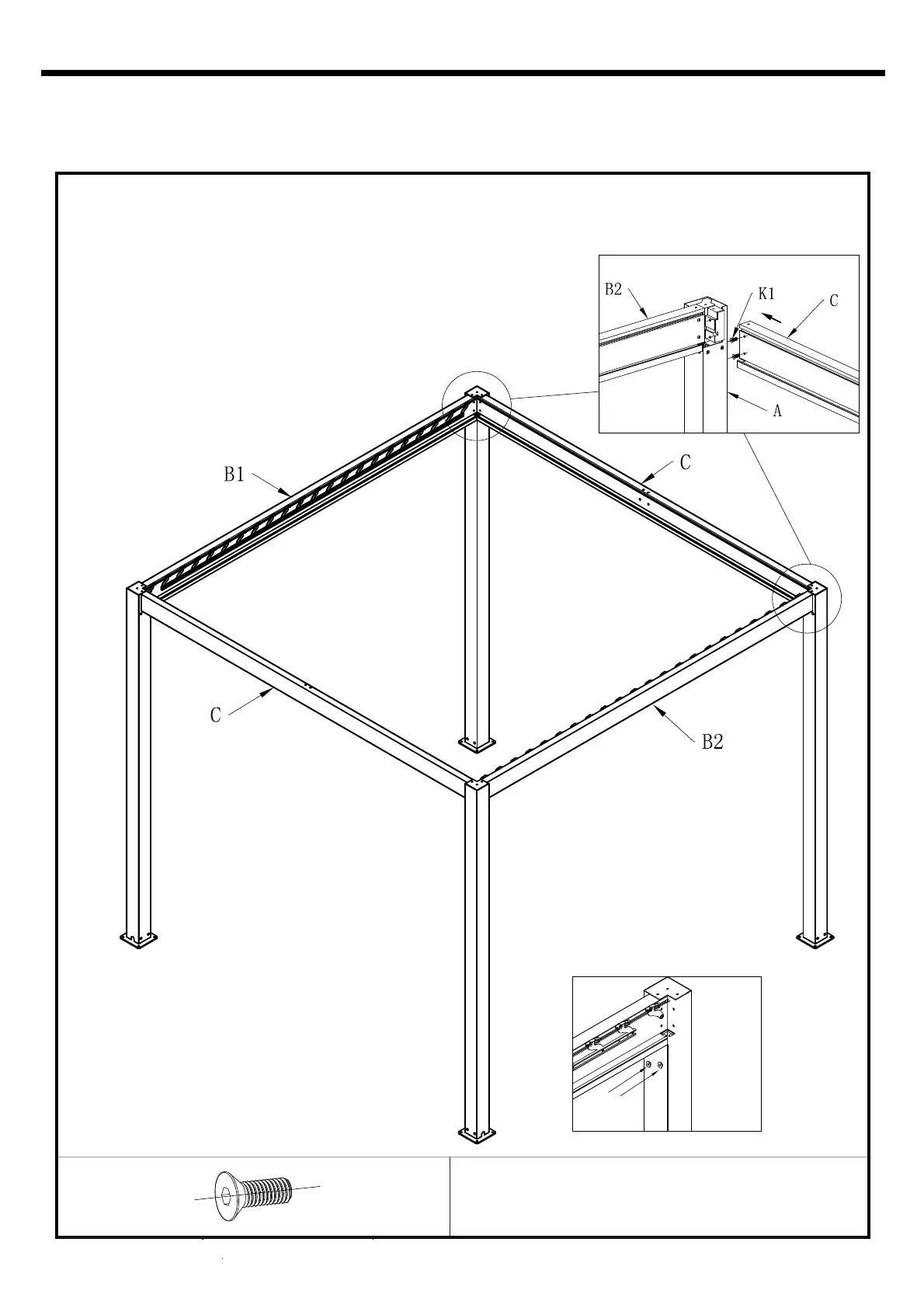 6b. Insert and tighten screws K1 to secure beam C to both columns