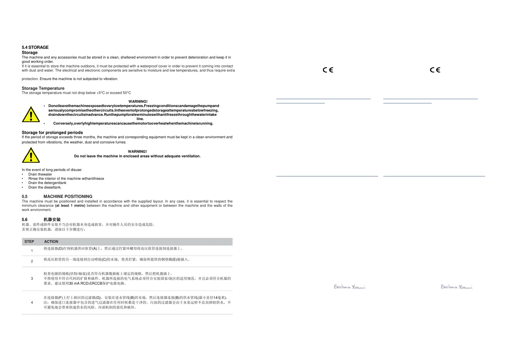 • Donotleavethemachineexposedtoverylowtemperatures.Freezingconditionscandamagethepumpand