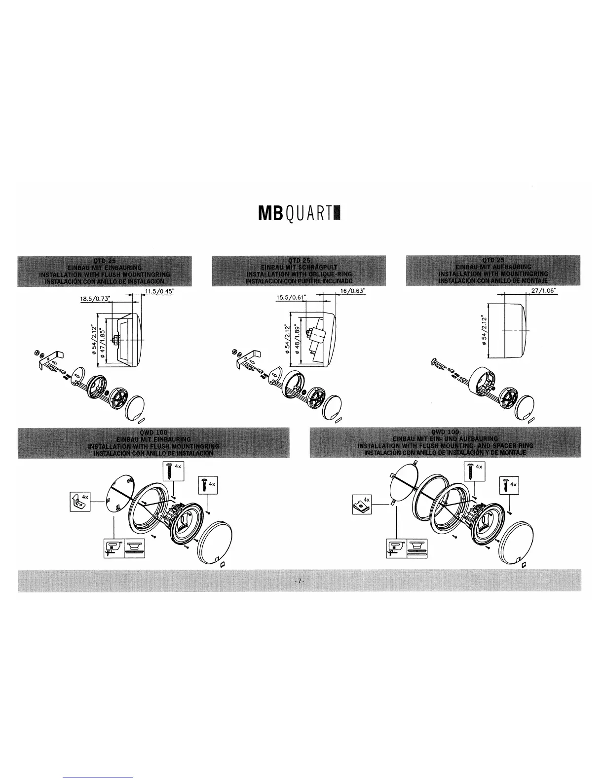 MB QUART QSD 213 - Installation Diagrams and Dimensions