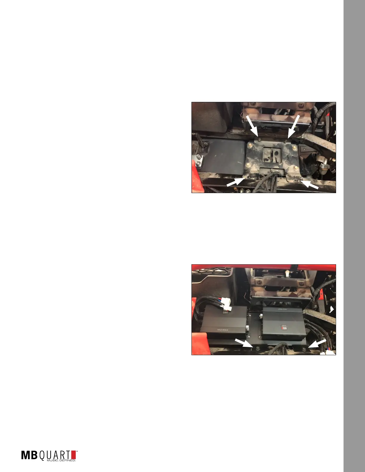 (2) 10mm bolts from the ECU bracket to secure the dual amp plate in its nal position.
