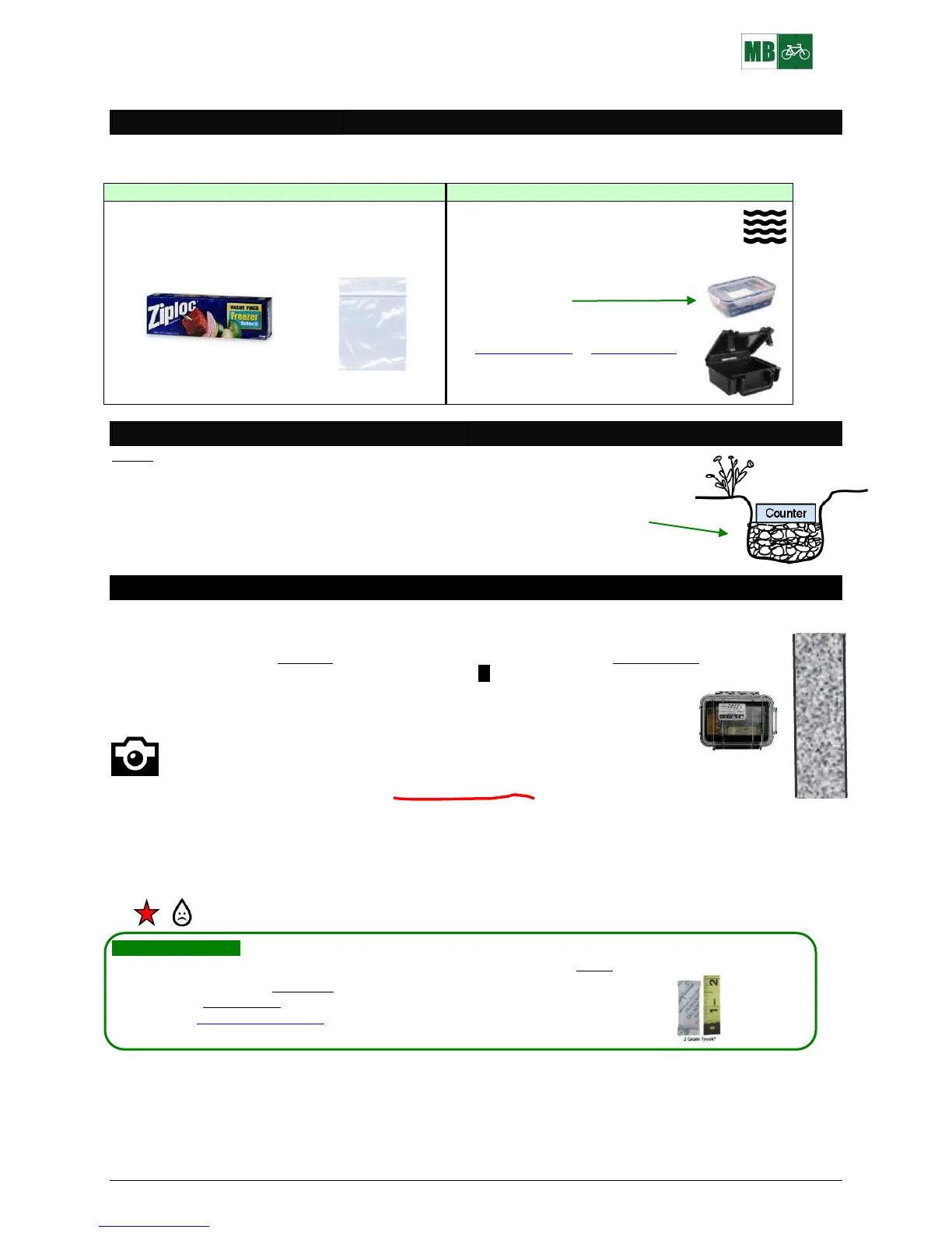 under a bridge or ramp, or hidden under a log or stone at the trail side). If burying the counter, before going to the