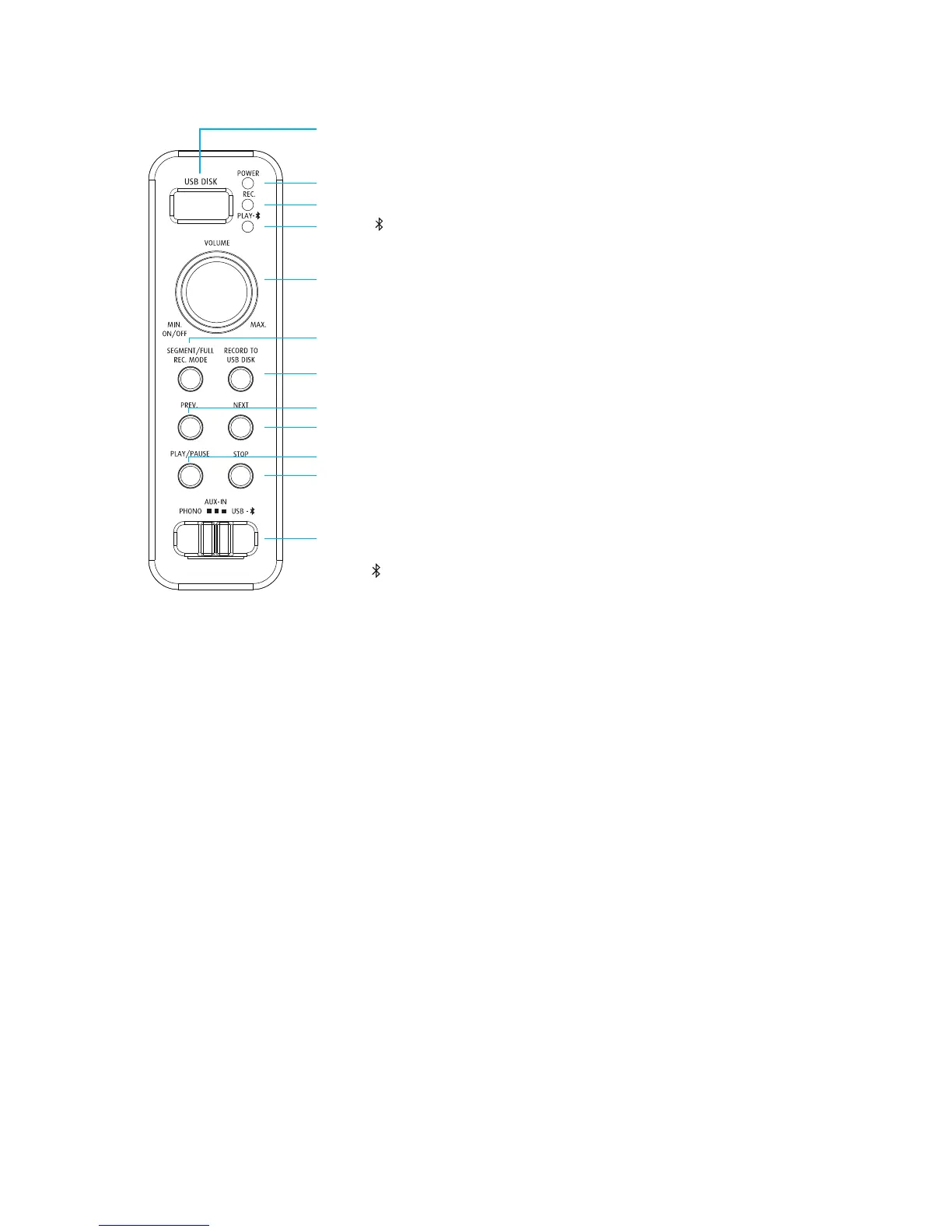 USB - : Enable USB disk contents playing back or Bluetooth
