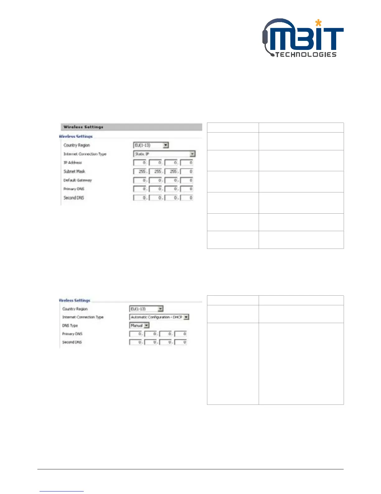 In static mode, user should fill in the values of IP Address, Subnet Mask, Default Gateway, Primary DNS and
