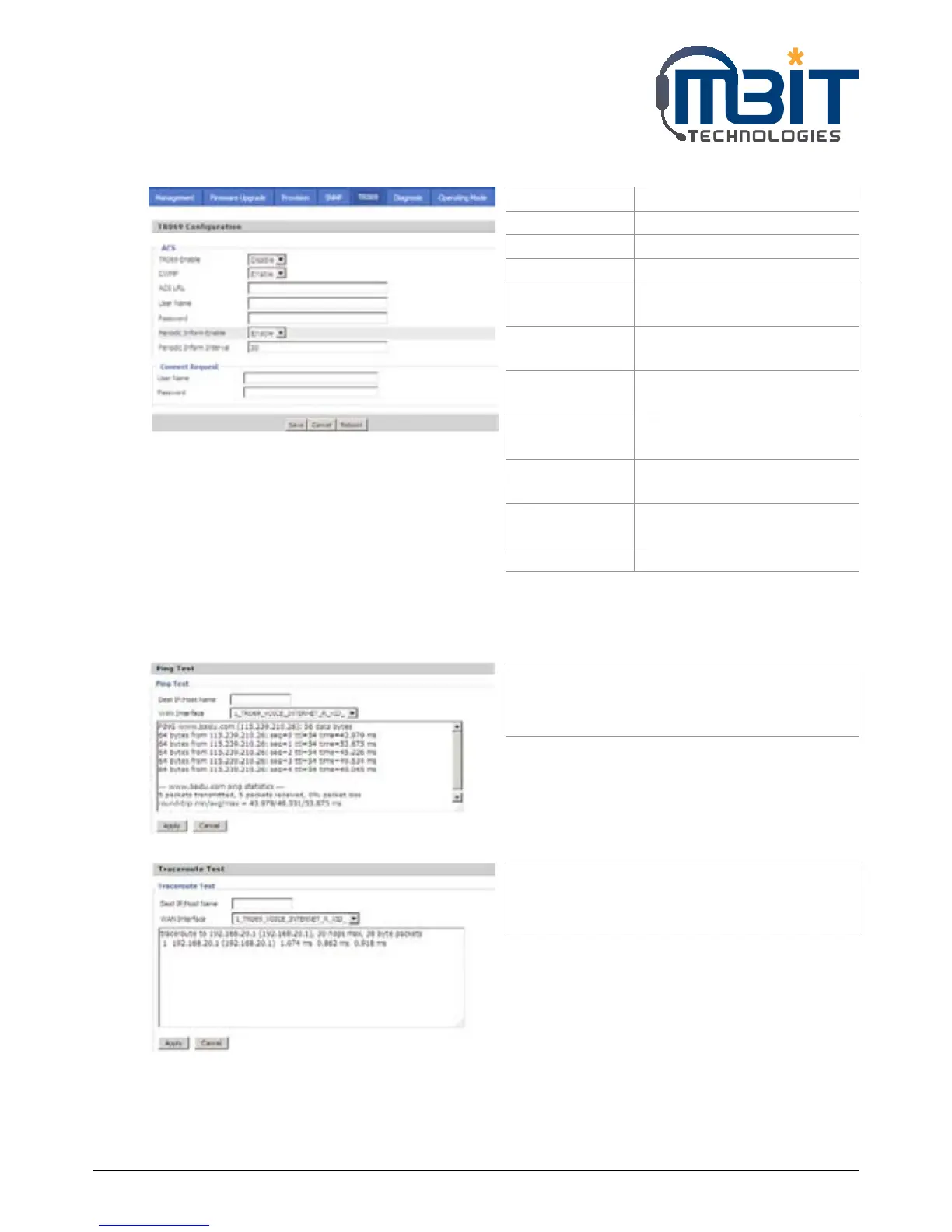In this page, user can do ping test and traceroute test to diagnose the device’s connection status.