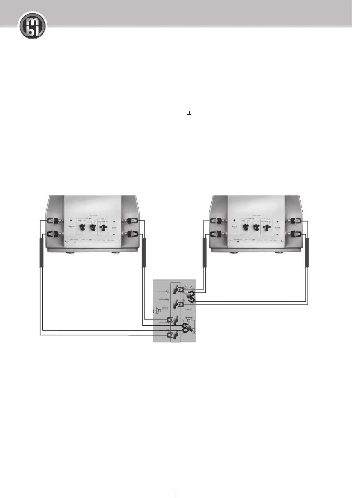 If you want to connect your mbl 101 E MKII Radialstrahler to one power amplifier use the STEREO con-