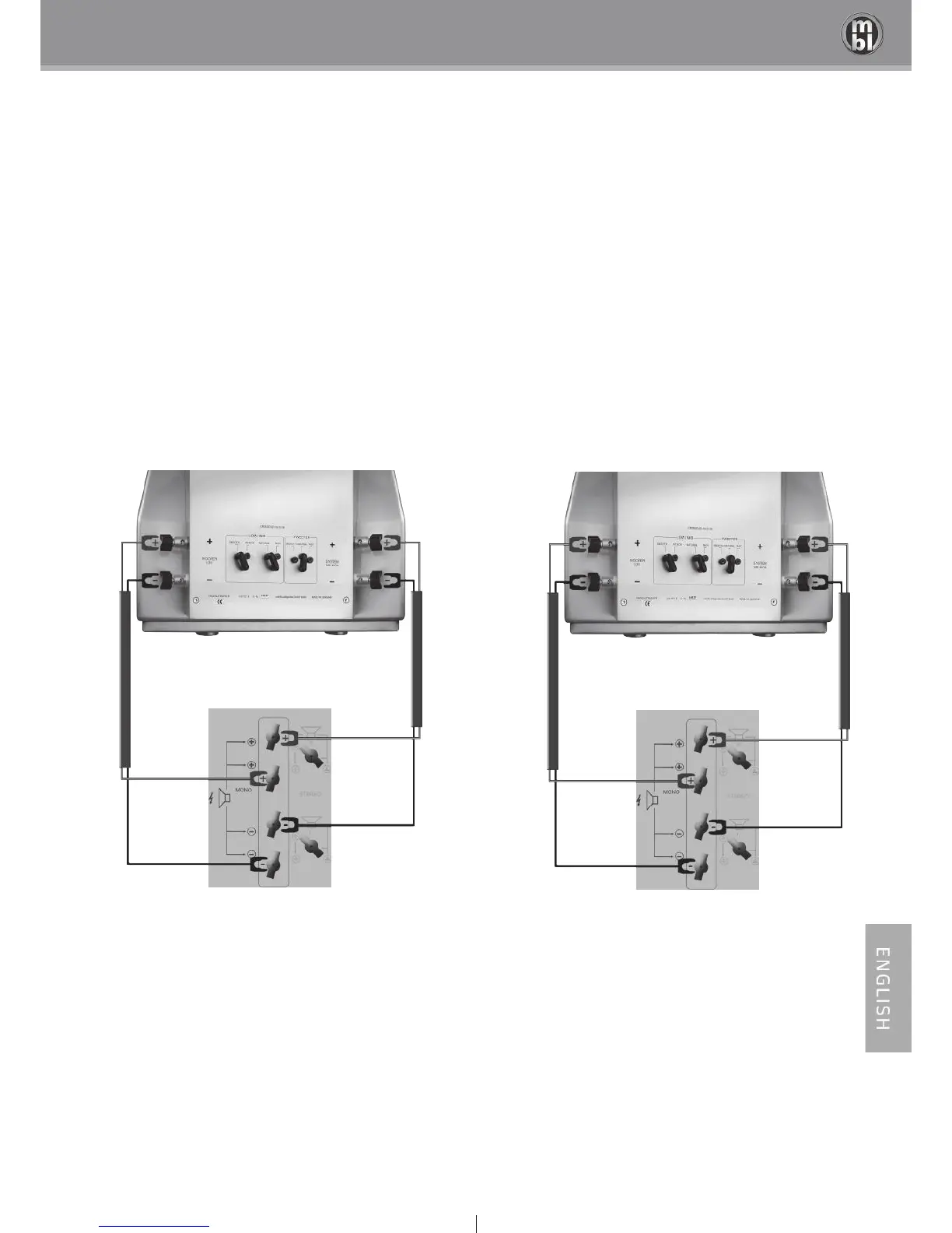 2.3 b) Connecting power amplifiers to speakers in mono mode, bi-wiring