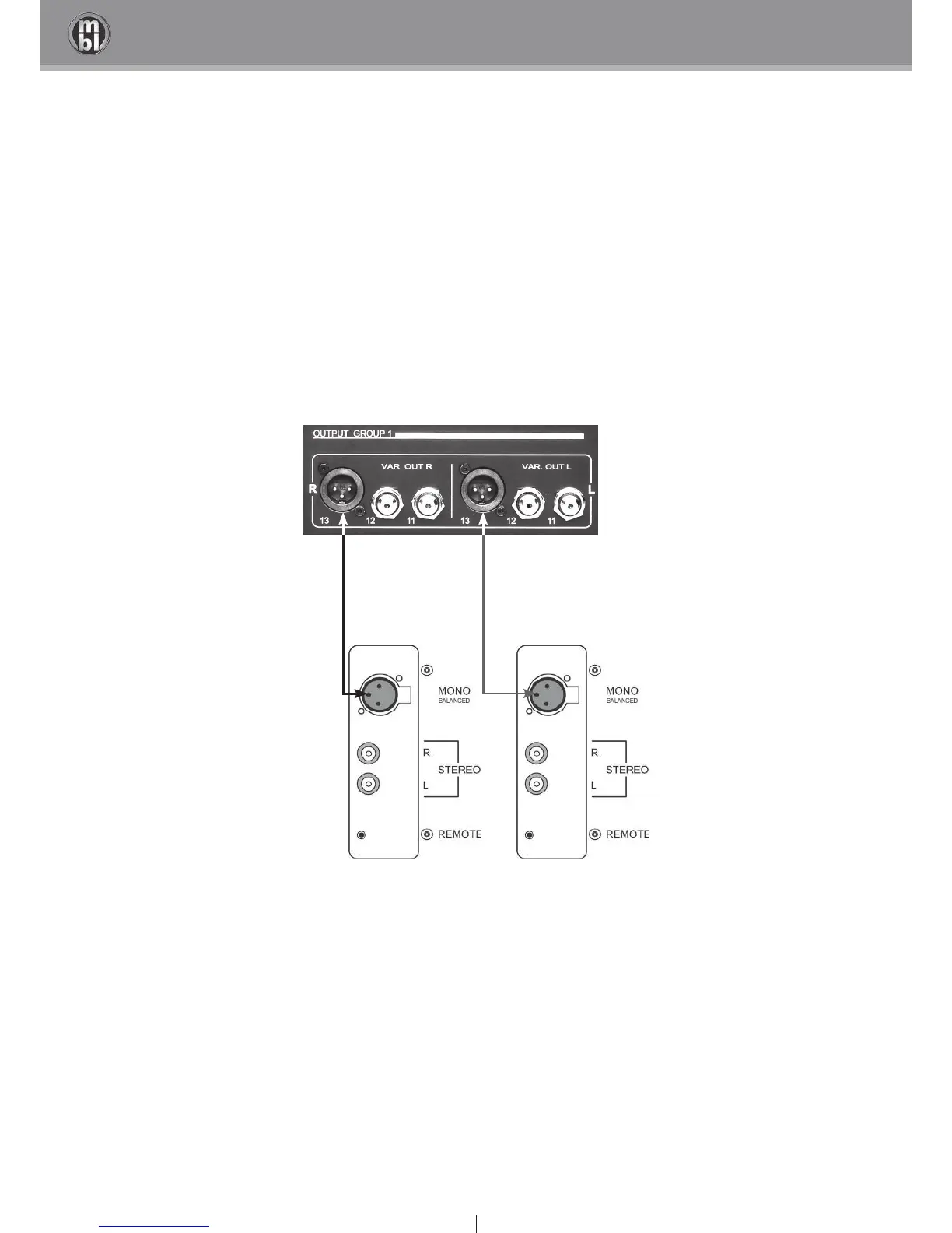 2.3 c) Connecting power amplifiers to preamplifier in mono mode (Balanced Mono)