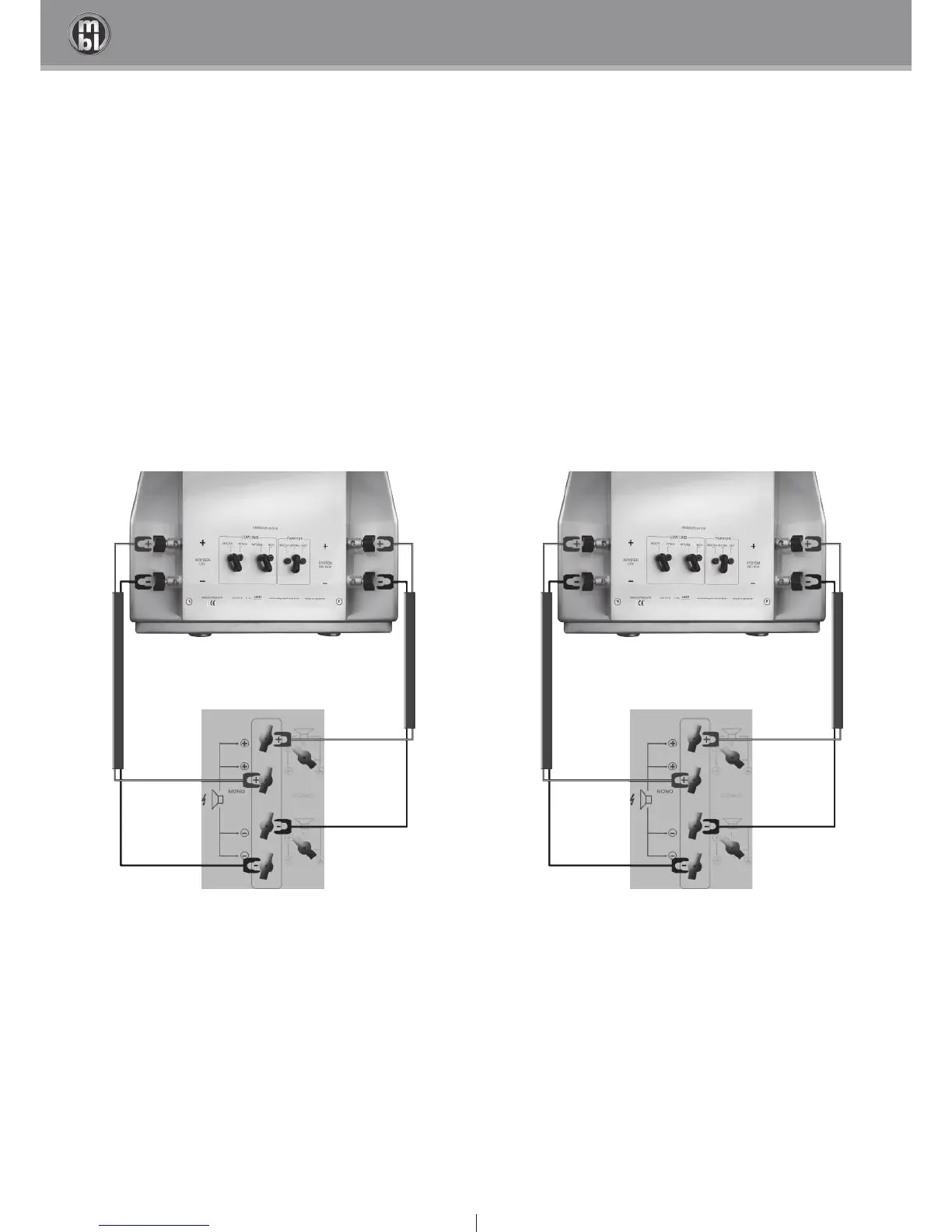 2.3 b) Verbinden von Endstufen und Lautsprechern im Mono Betrieb, bi-wiring