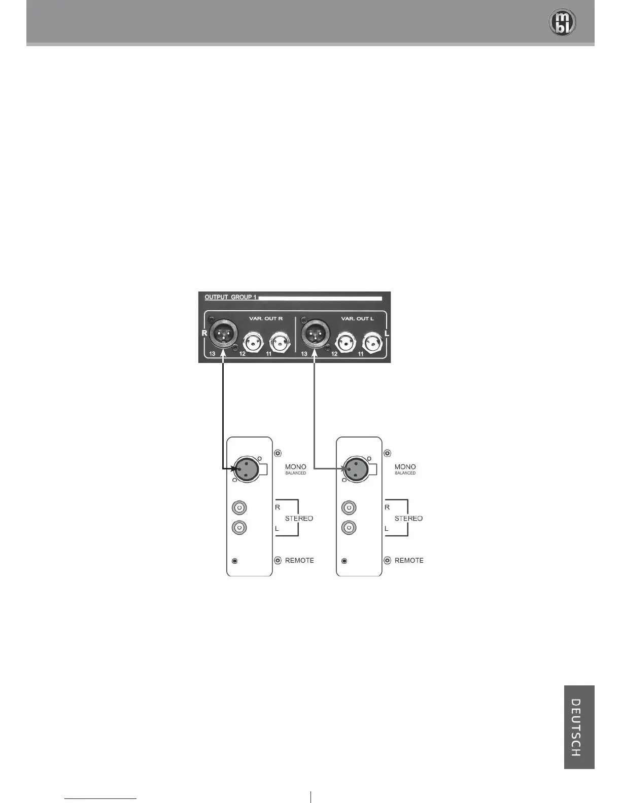 Verbinden Sie den Ausgang des Vorverstärkers über ein symmetrisches Kabel mit dem Balanced-Mono-Eingang der jeweiligen