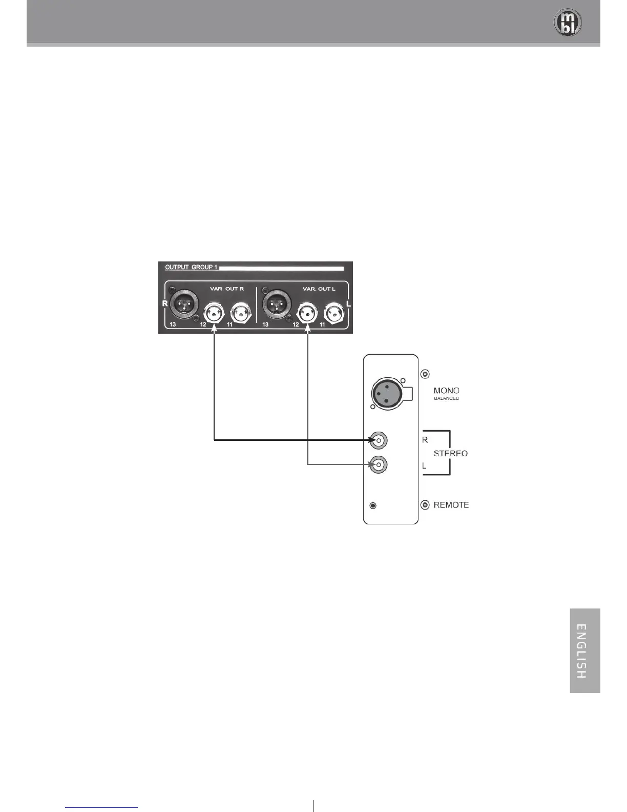 2.2 c) Connecting power amplifier to preamplifier in stereo mode (Unbalanced Stereo)