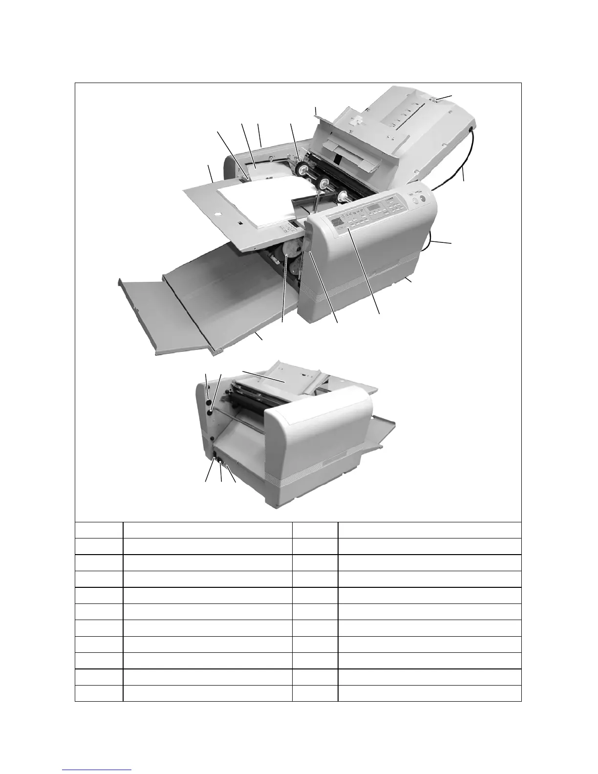 ⑤ Auxiliary feed table ⑮ Table 1 socket