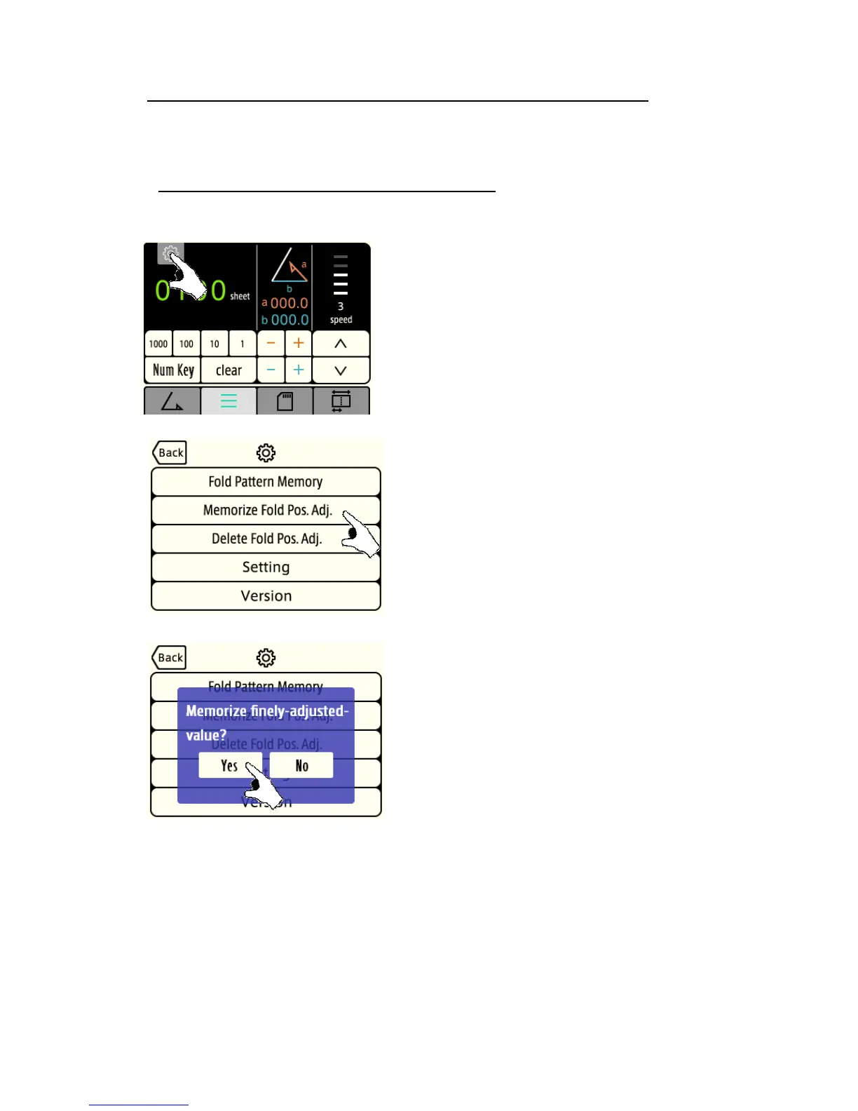 [2] Press the “Fold Pos. Adj. Memorize” key.