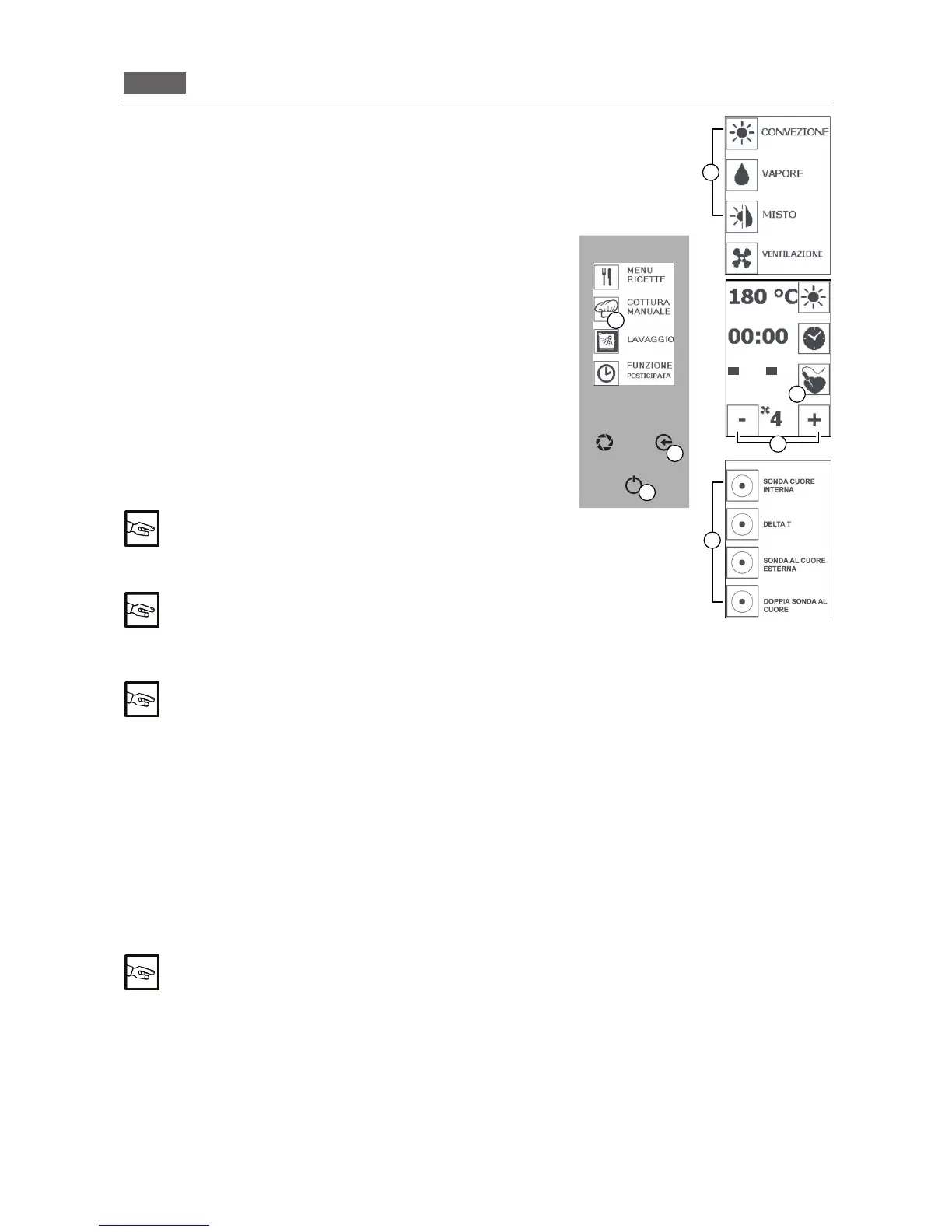 È possibile impostare la funzione sonda al cuore e delta T in tutte le modalità di cottura e/o fasi