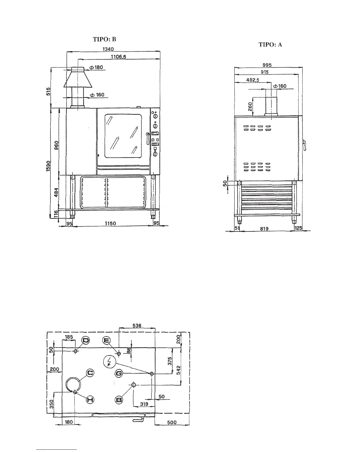 C) Chamber flue Ø 160 mm