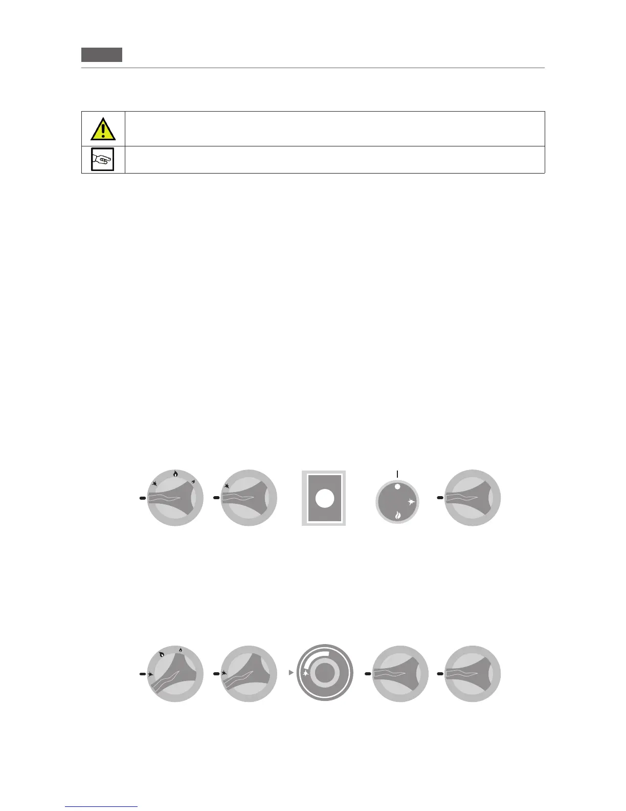 Urządzenie Gazowe: Przekręcić pokrętło na pozycję piezoelektryczną (A-B-C-2), płomień startowy pozostaje,