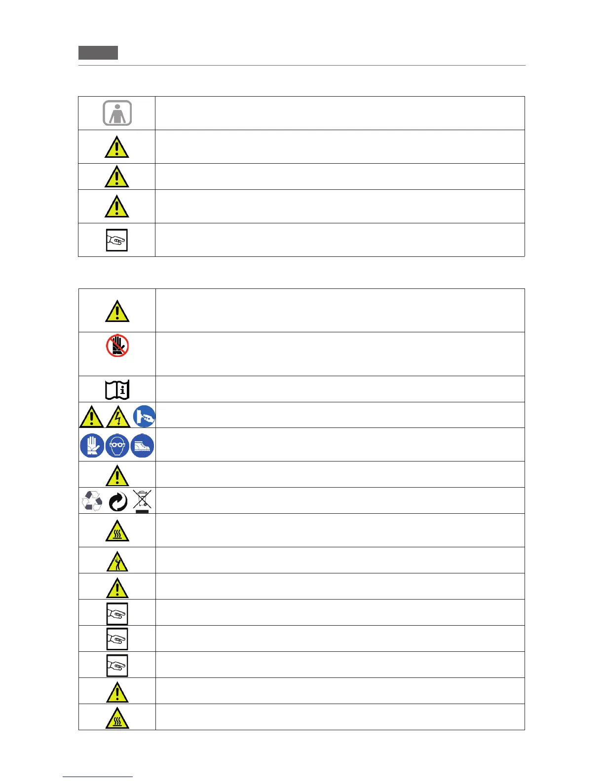 It is strictly forbidden to tamper with or remove the plates and pictograms applied to the equipment.