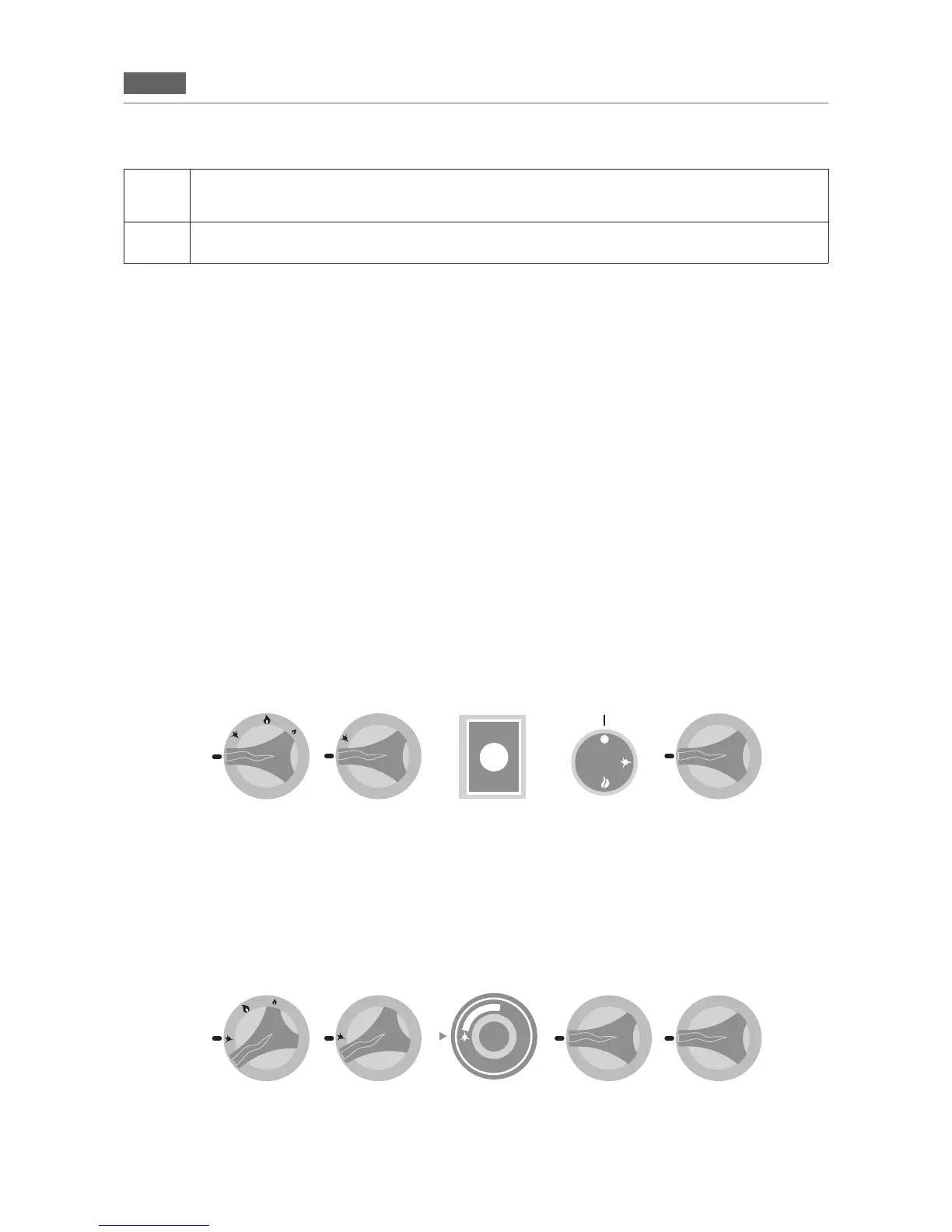 • Aparelhagem a gás: Girar os manípulos para a posição piezoelétrica (A-B-C-2) e a chama piloto permanece em função enquanto