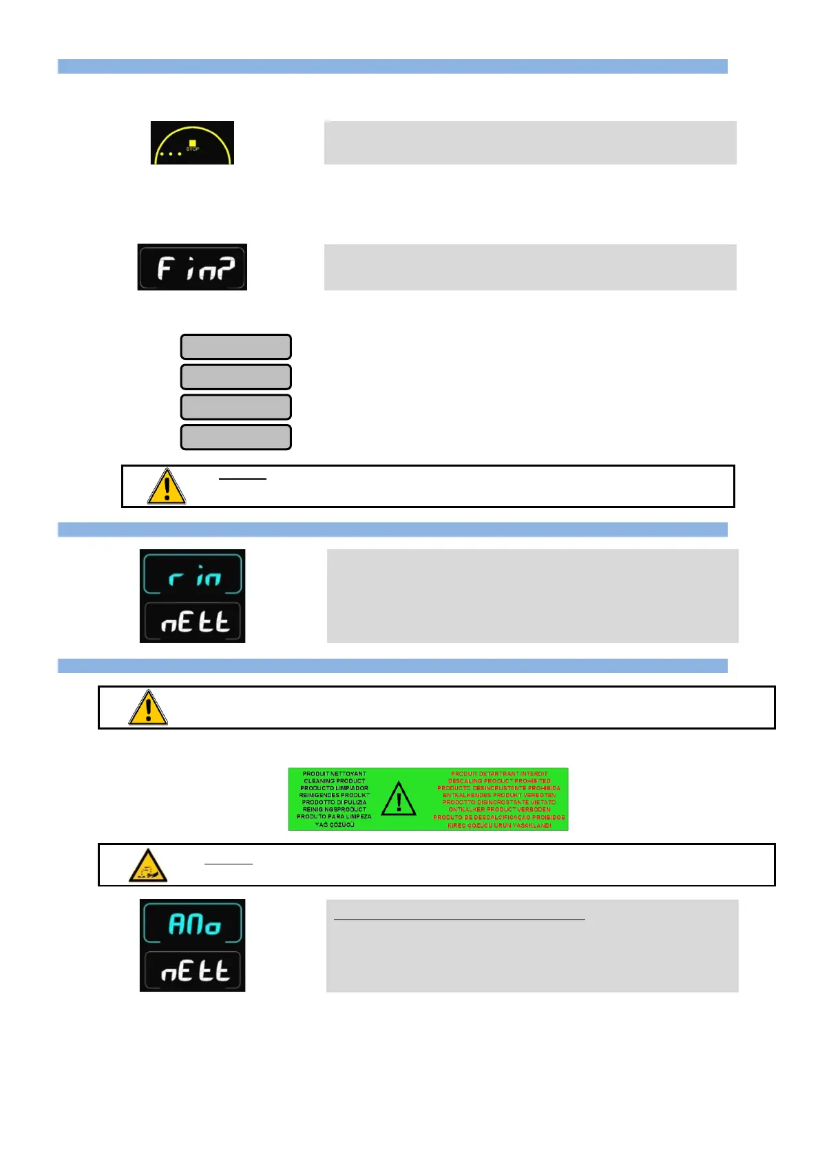 è "STOP" Arrêt du cycle de nettoyage.
